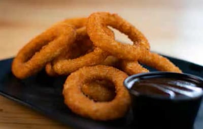 Deliciosas rebanadas de salchicha sazonadas con salsas negras y un toque de salsa hot.